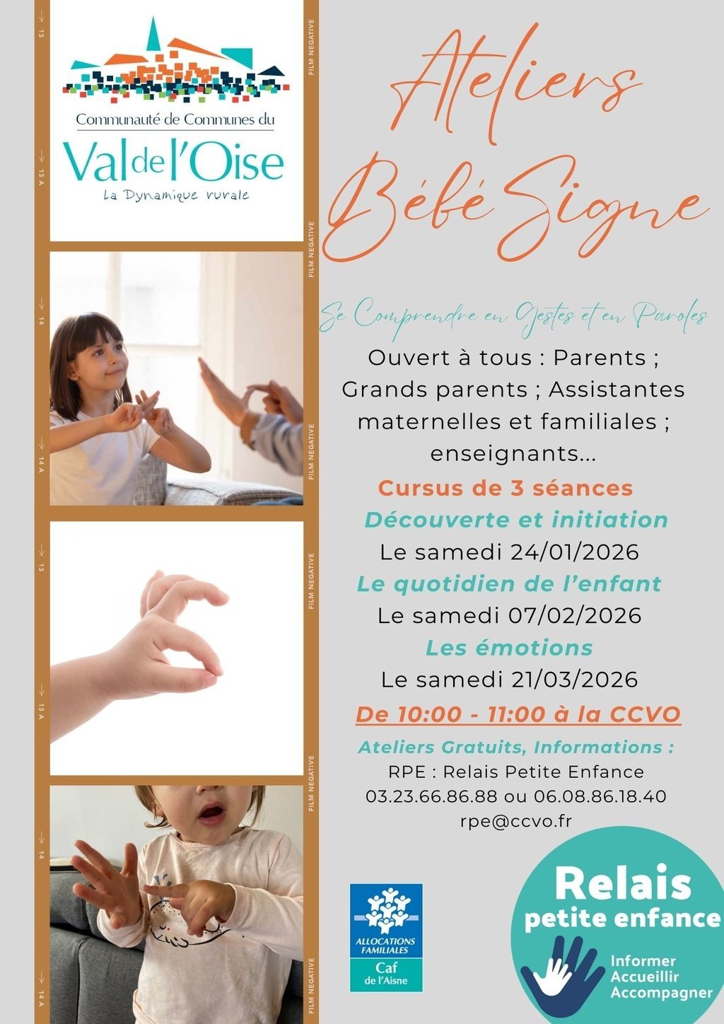 Le RPE "Relais Petite Enfance" de la CCVO vous propose un nouveau cycle d'ateliers "Bébé Signe".