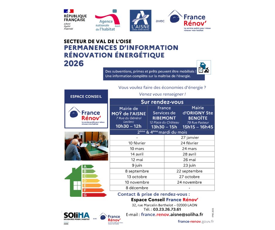 Permanences Espace Conseil France Rénov' 2ème et 4ème mardi du mois.