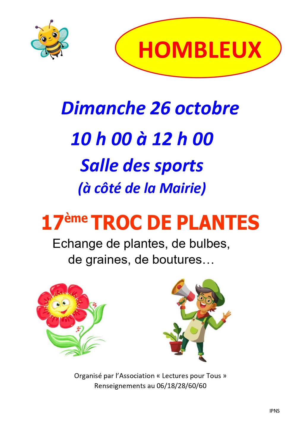 Le dimanche 26 octobre, de 10h à 12h, rendez-vous à la salle des sports (à côté de la mairie) pour le 17ème Troc de Plantes ! Échangez vos plantes, bulbes, graines ou boutures et repartez avec de nouveaux trésors pour votre jardin.