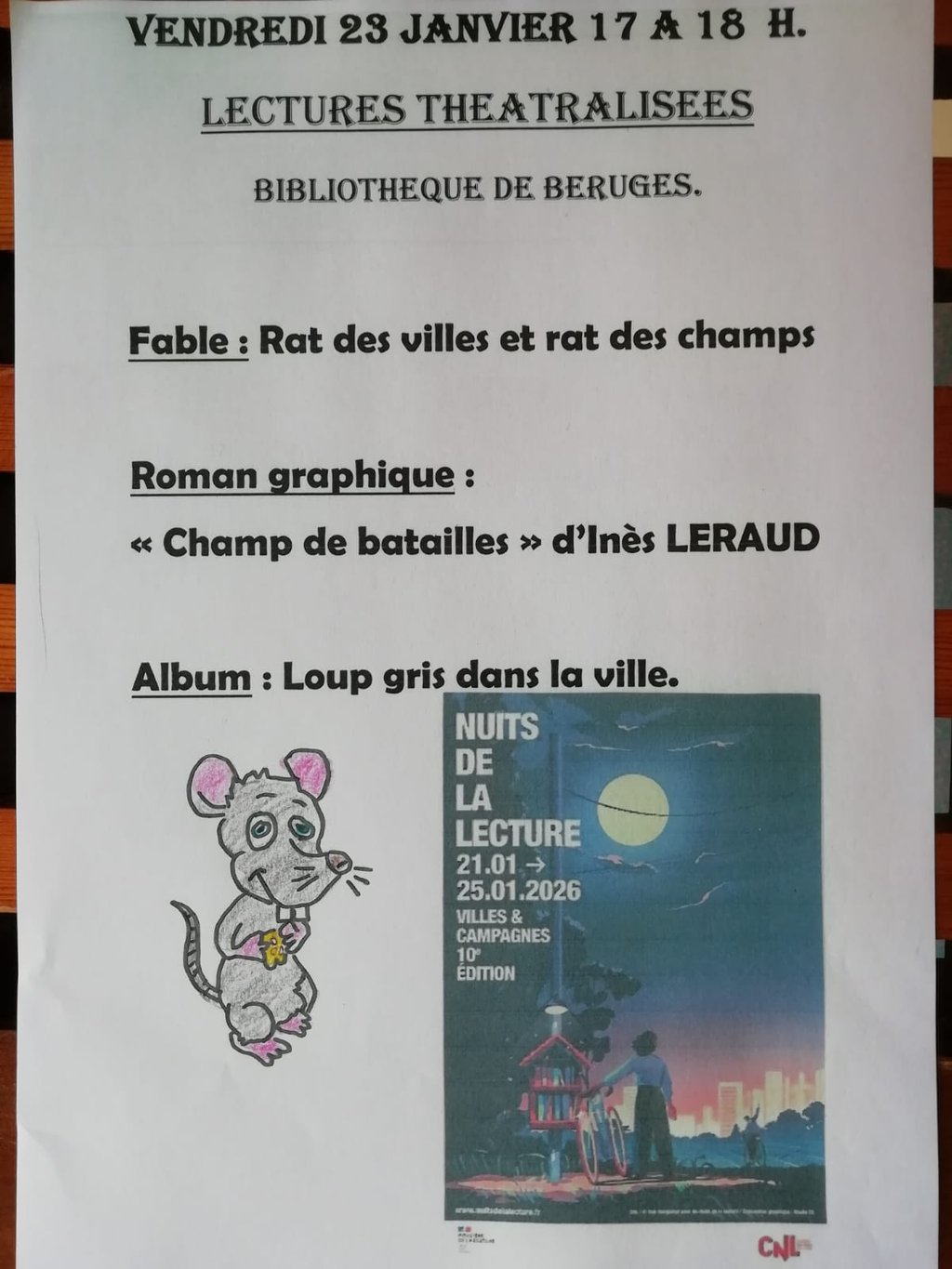 Vendredi 23 janvier, à 17h : Nuit de la lecture avec des lectures oralisées - Tout public