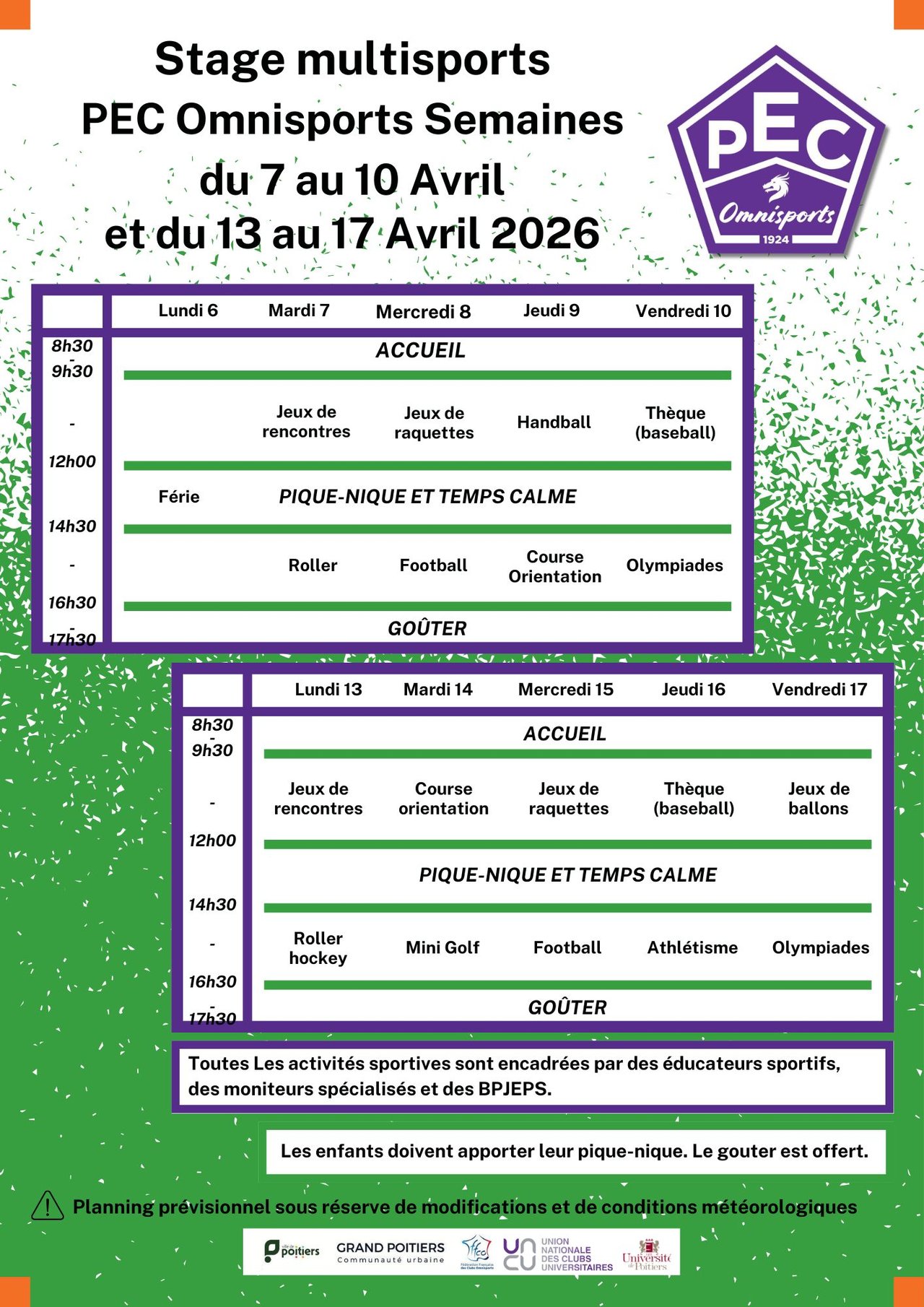 STAGES MULTISPORTS SAISON 2026 - PEC OMNISPORTS