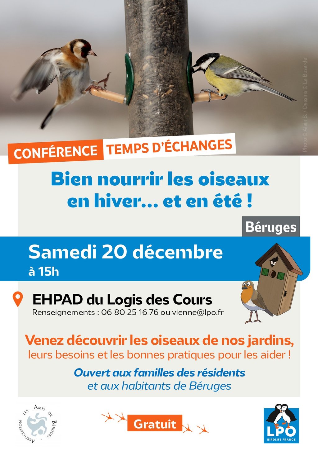 Invitation – Conférence LPO (Ligue pour la protection des oiseaux) à l’EHPAD du Logis des Cours de Béruges – Samedi 20 Décembre à 15 h (durée 45 mn)