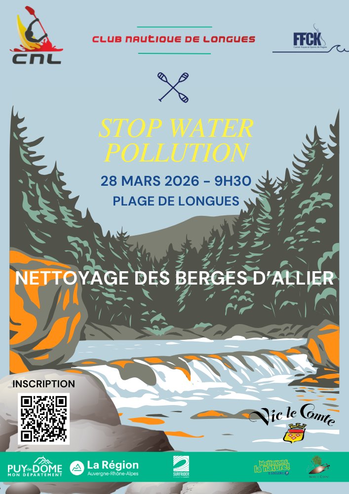 Le Club Nautique de Longues organise, comme chaque année, le nettoyage de la plage et des berges de l'Allier en partenariat avec la ville de Corent et de Vic-le-Comte. RDV plage de Longues.
