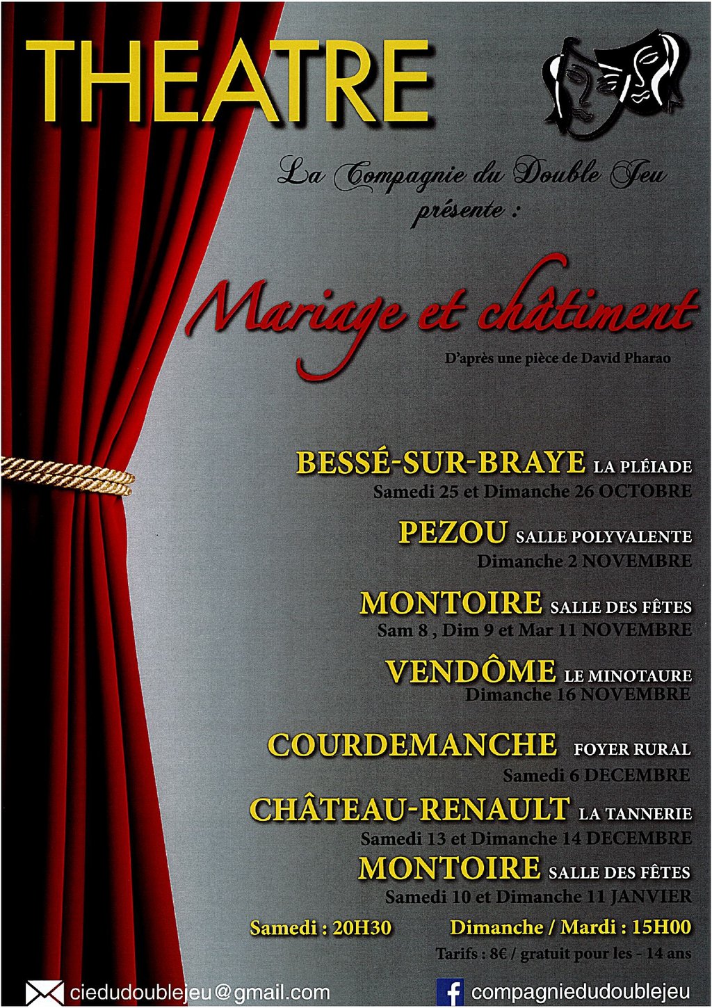 La compagnie Double Jeu propose deux représentations théâtrales les 25 et 26 octobre 2025 salle la Pléiade.