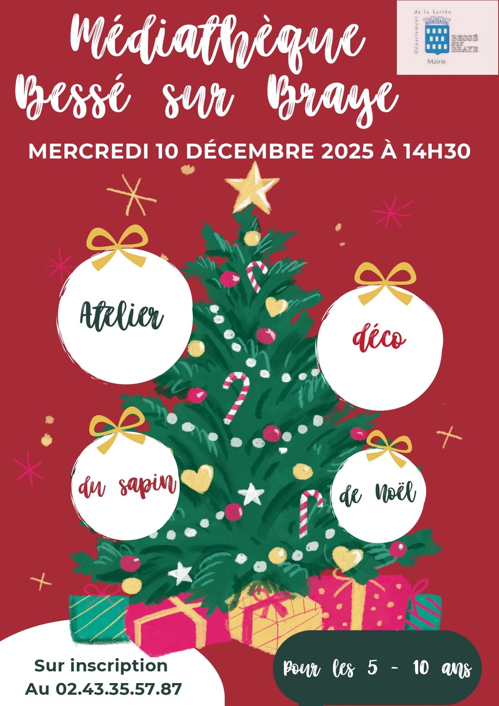 La médiathèque propose mercredi 10 décembre 2025 à 14 h 30, la "déco du sapin de Noël" pour les 5 - 10 ans.