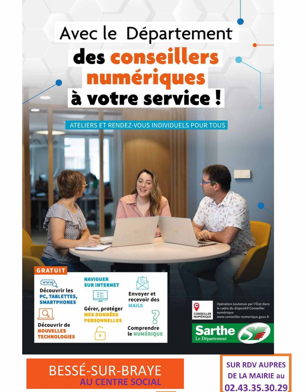 Permanence du conseiller numérique le 12 janvier. Prendre rendez-vous au 02 43 35 30 29.