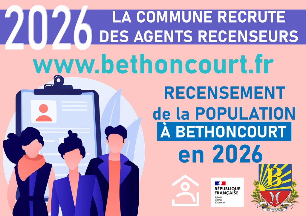 Dans la strate des communes de moins de 10 000 habitants, Bethoncourt sera couvert par le recensement de mi-janvier à mi-février 2026.