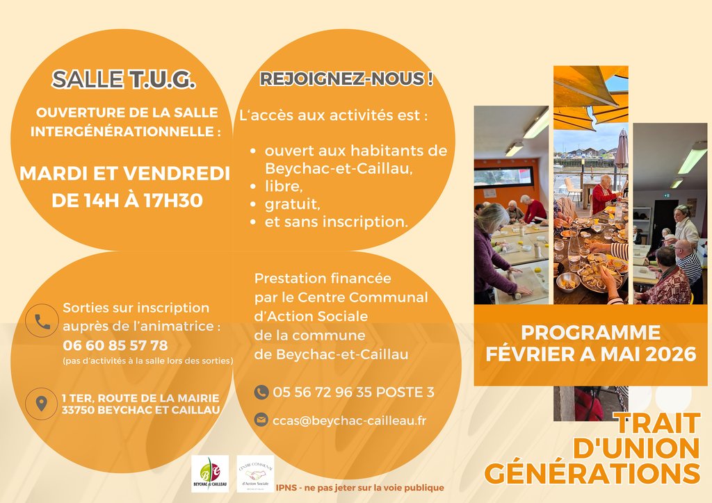 L'espace intergénérationnel Trait d'Union Générations vous propose son programme d'activité de Février à Mai 2026.
