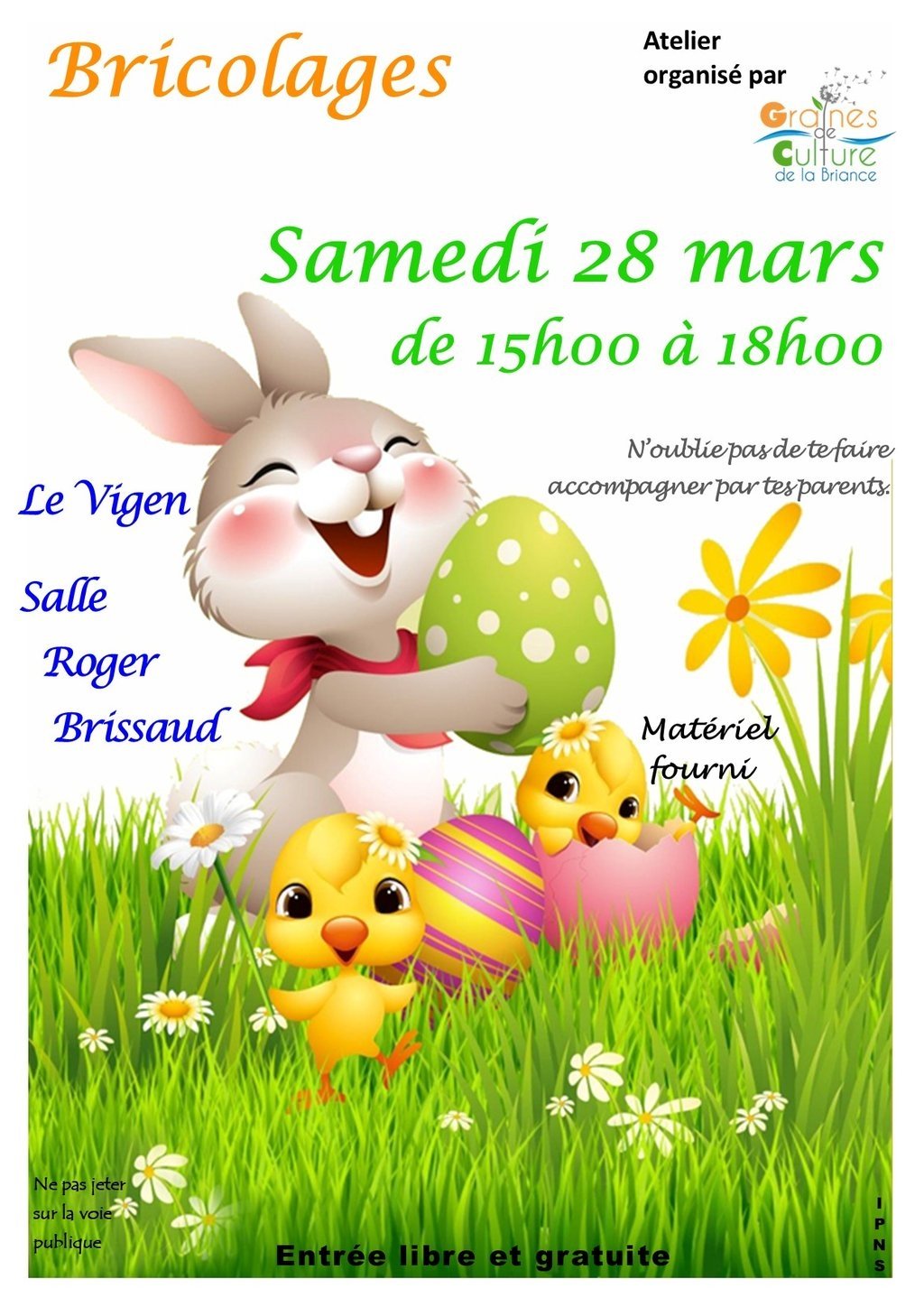 L'association Graines de Cultures de la Briance organise le samedi 28 mars de 15h00 à 18h00 son traditionnel atelier bricolage à la salle Brissaud sur le commune Le Vigen.