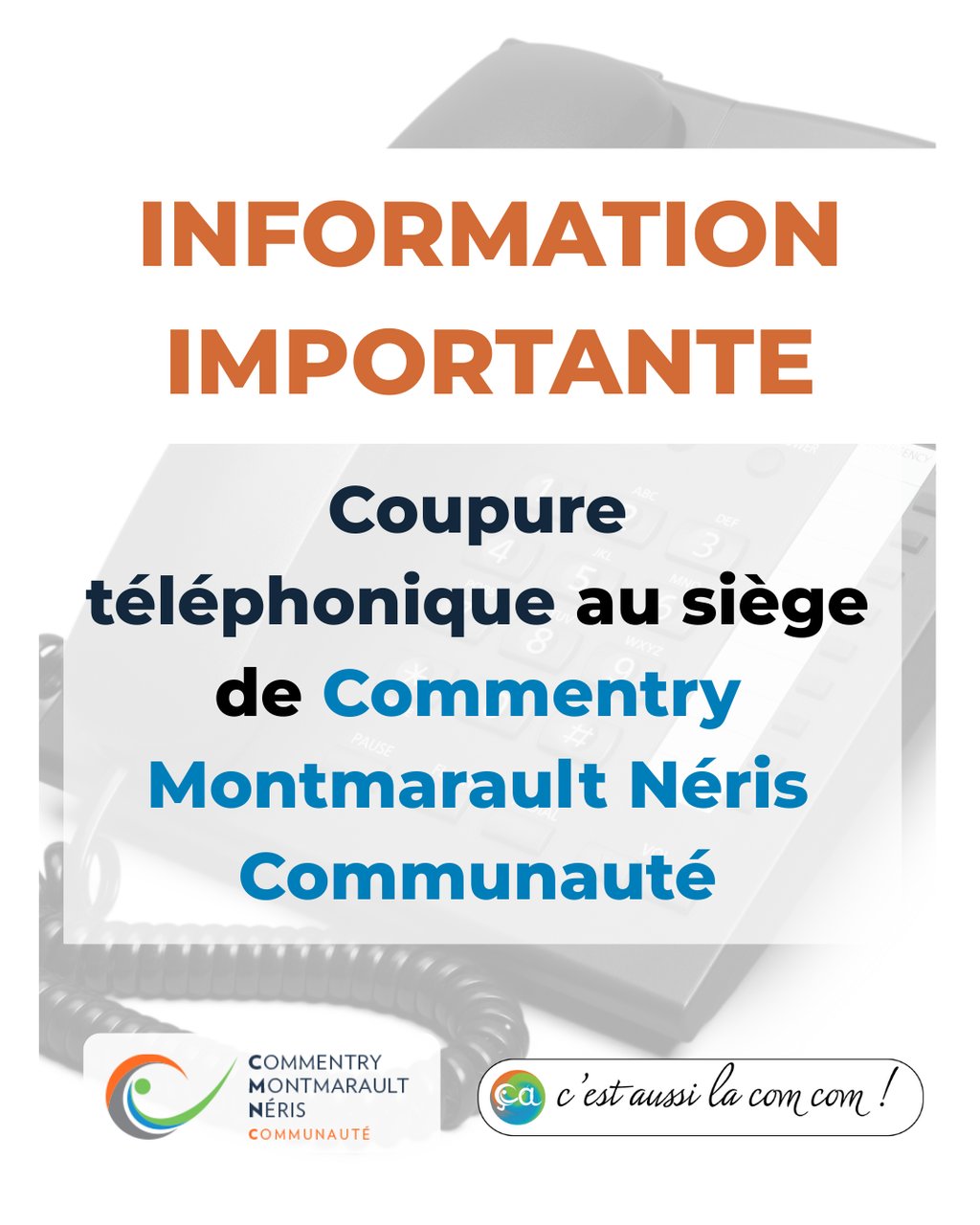 INFORMATION : COUPURE TÉLÉPHONIQUE AU SIÈGE DE COMMENTRY MONTMARAULT NÉRIS COMMUNAUTÉ