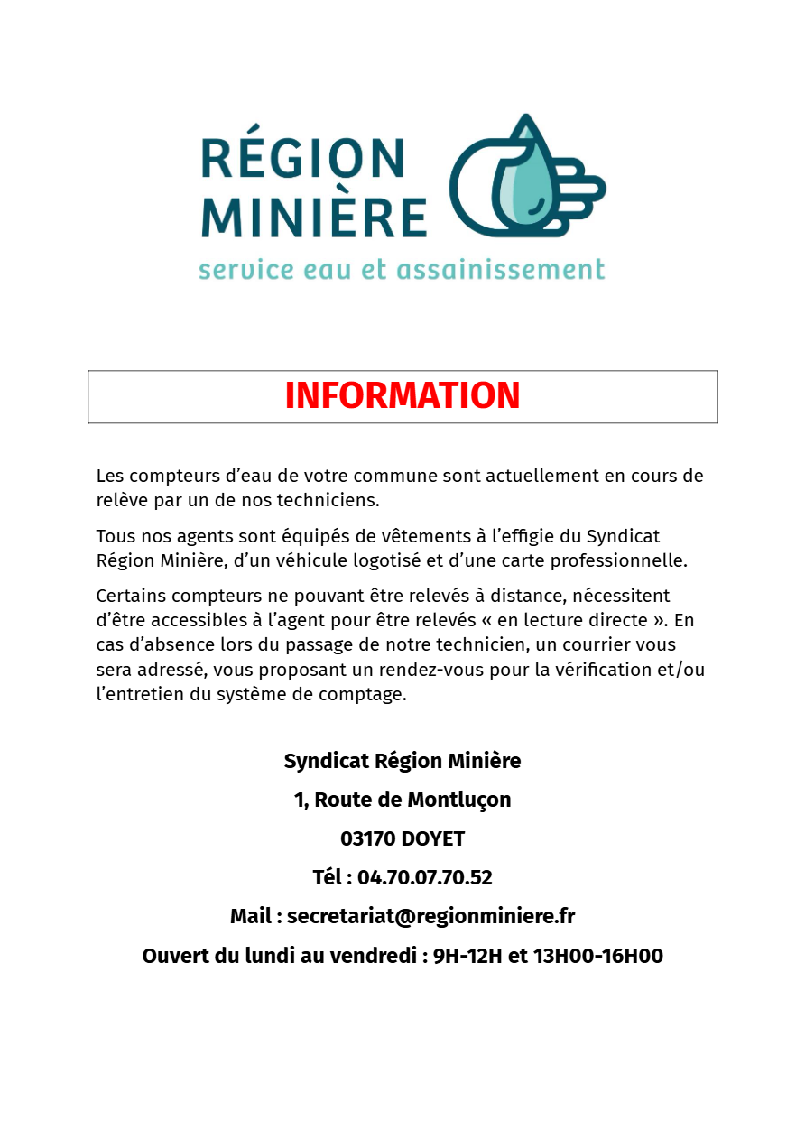 La relève des compteurs d’eau est actuellement en cours ou va bientôt commencer dans notre commune.