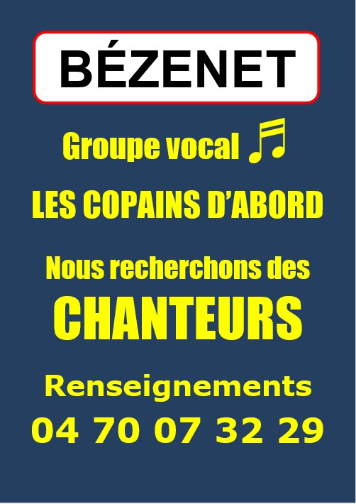 Le groupe vocal "les copains d'abord" recherche des chanteurs.