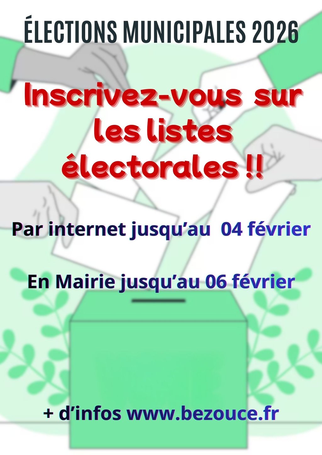 Municipales 2026,penser à vous inscrire sur les listes électorales.
