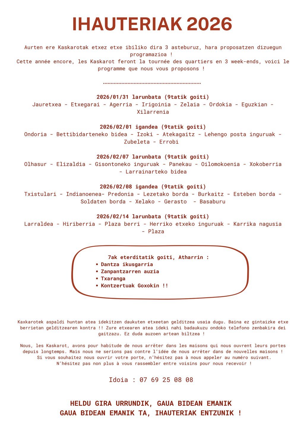 Aurten ere Kaskarotak etxez etxe ibiliko dira 3 asteburuz, hara proposatzen dizuegun programazioa !