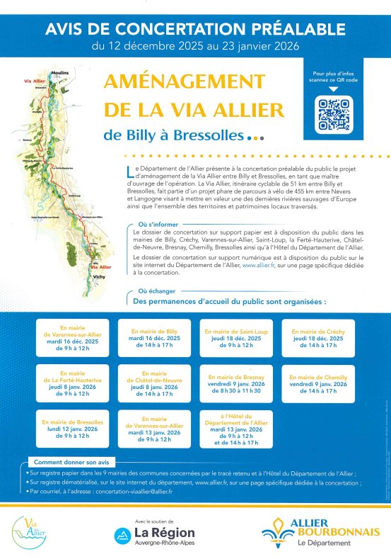 Une permanence d'accueil du public le mardi 16 décembre 2025 de 14h00 à 17h00 en mairie de Billy.