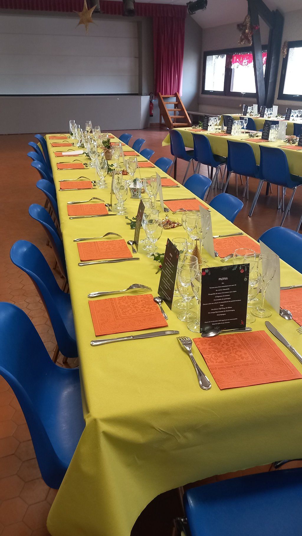 Mise en place du repas des Anciens. Merci à toutes les personnes mobilisées ce matin pour faire de cet instant un moment de partage et de convivialité.