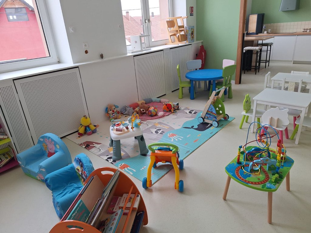 • d'une grande pièce de vie remplie de jeux, de livres, idéale pour pratiquer