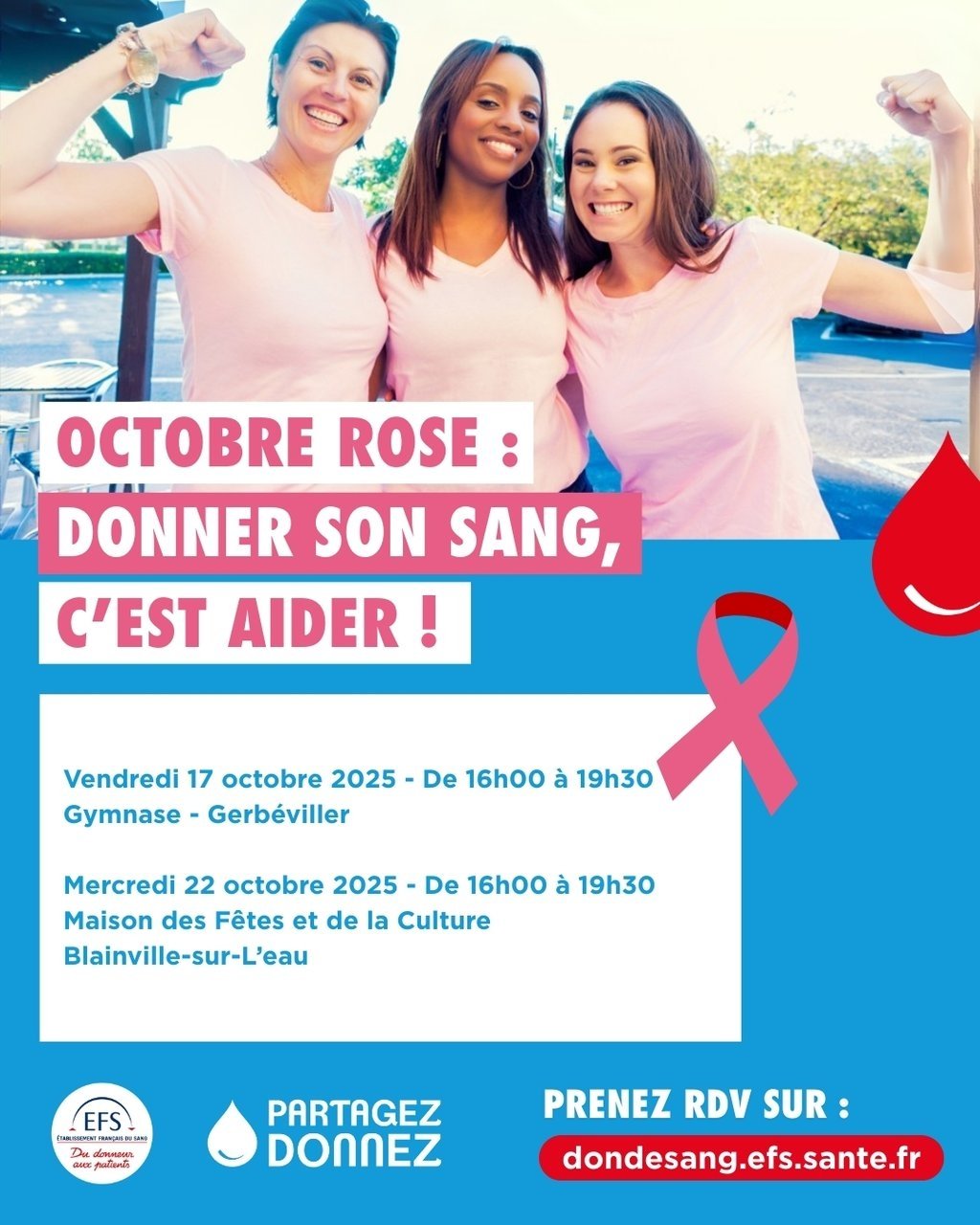 Prise de rendez-vous : https://dondesang.efs.sante.fr/