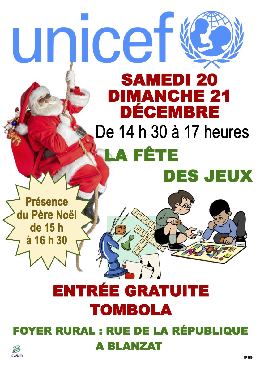 Les bénévoles de l'antenne Unicef de Blanzat organisent la Fête des Jeux annuelle le week-end du 20 et 21 décembre 2025.