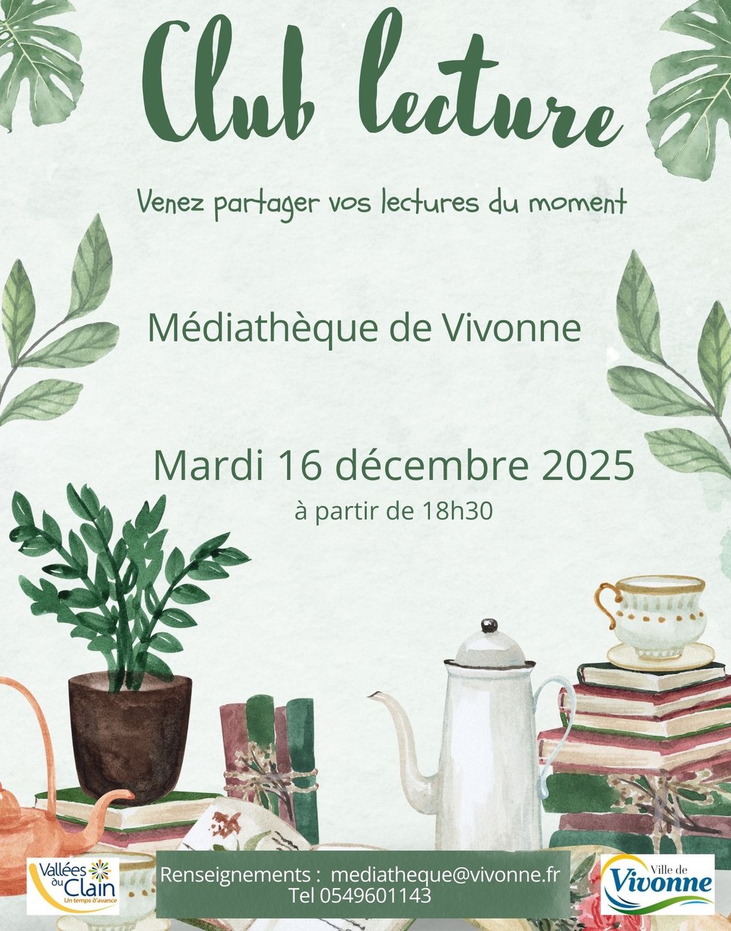 La médiathèque de Vivonne vous invite à son club lecture, le mardi 16 décembre à partir de 18 h 30.