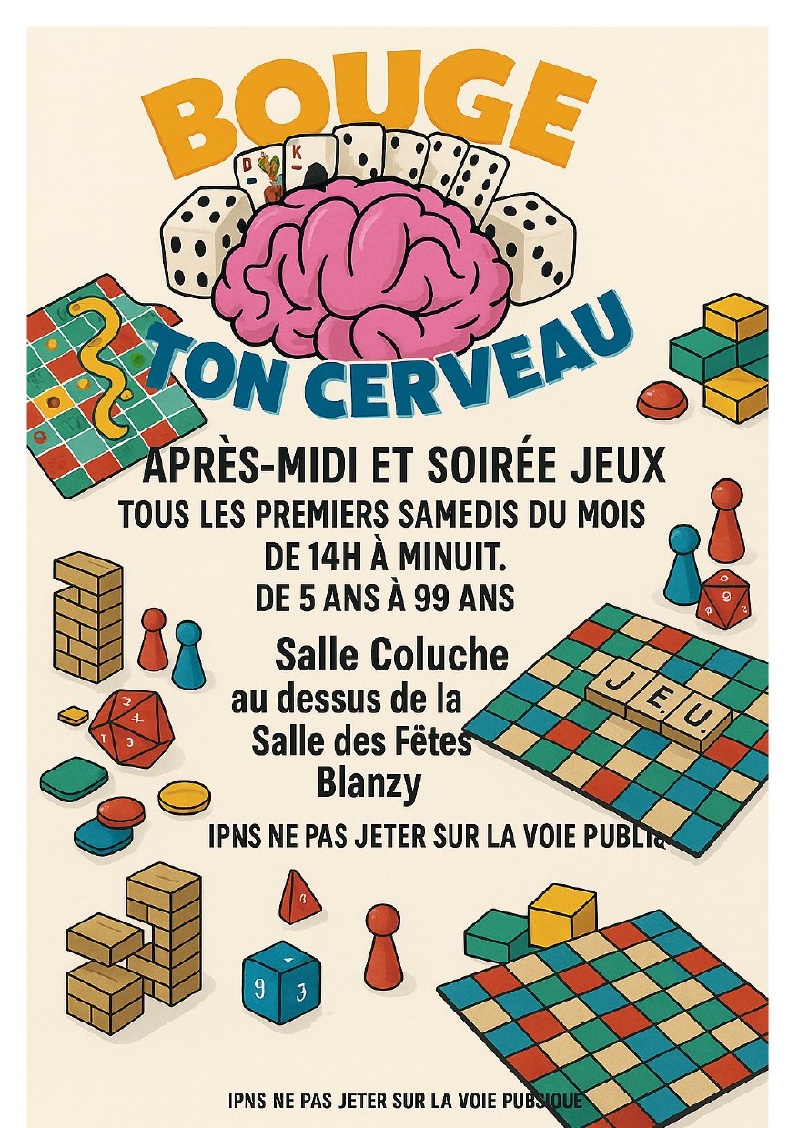 🎲 BOUGE TON CERVEAU, C’EST TOUS LES PREMIERS SAMEDIS DU MOIS À BLANZY ! 🧠