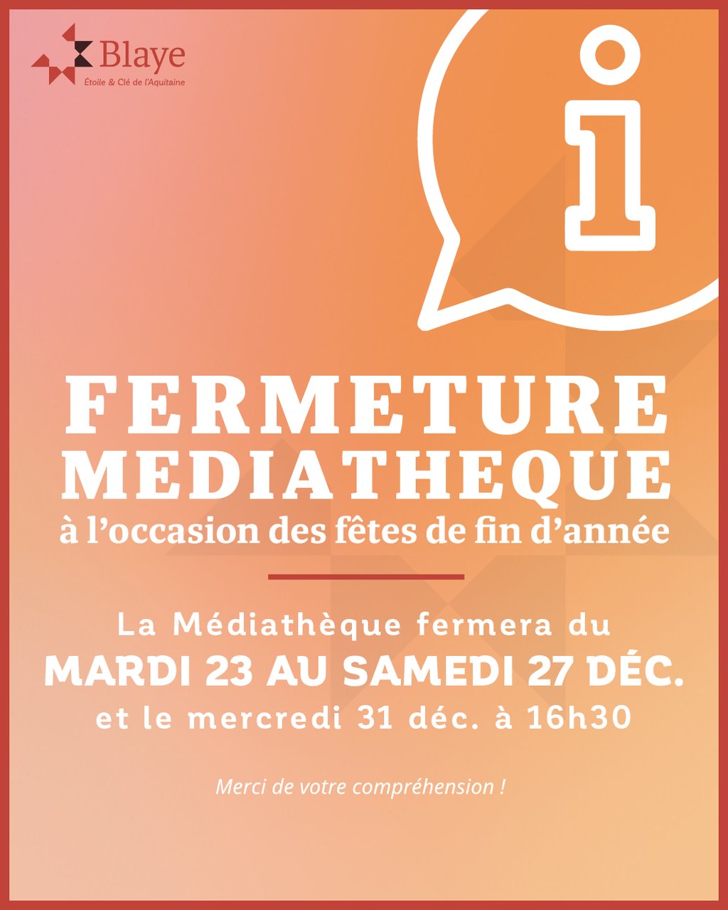 À l’occasion des fêtes, la médiathèque sera fermée :
