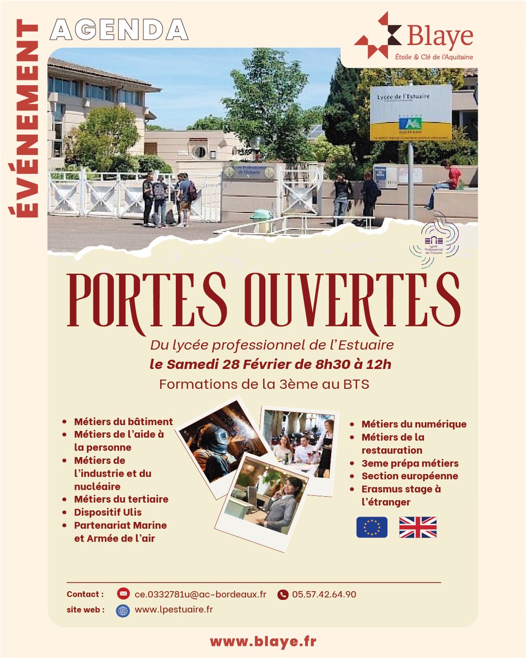 Le samedi 28 février de 8h30 à 12h, venez découvrir le Lycée professionnel de l'Estuaire !