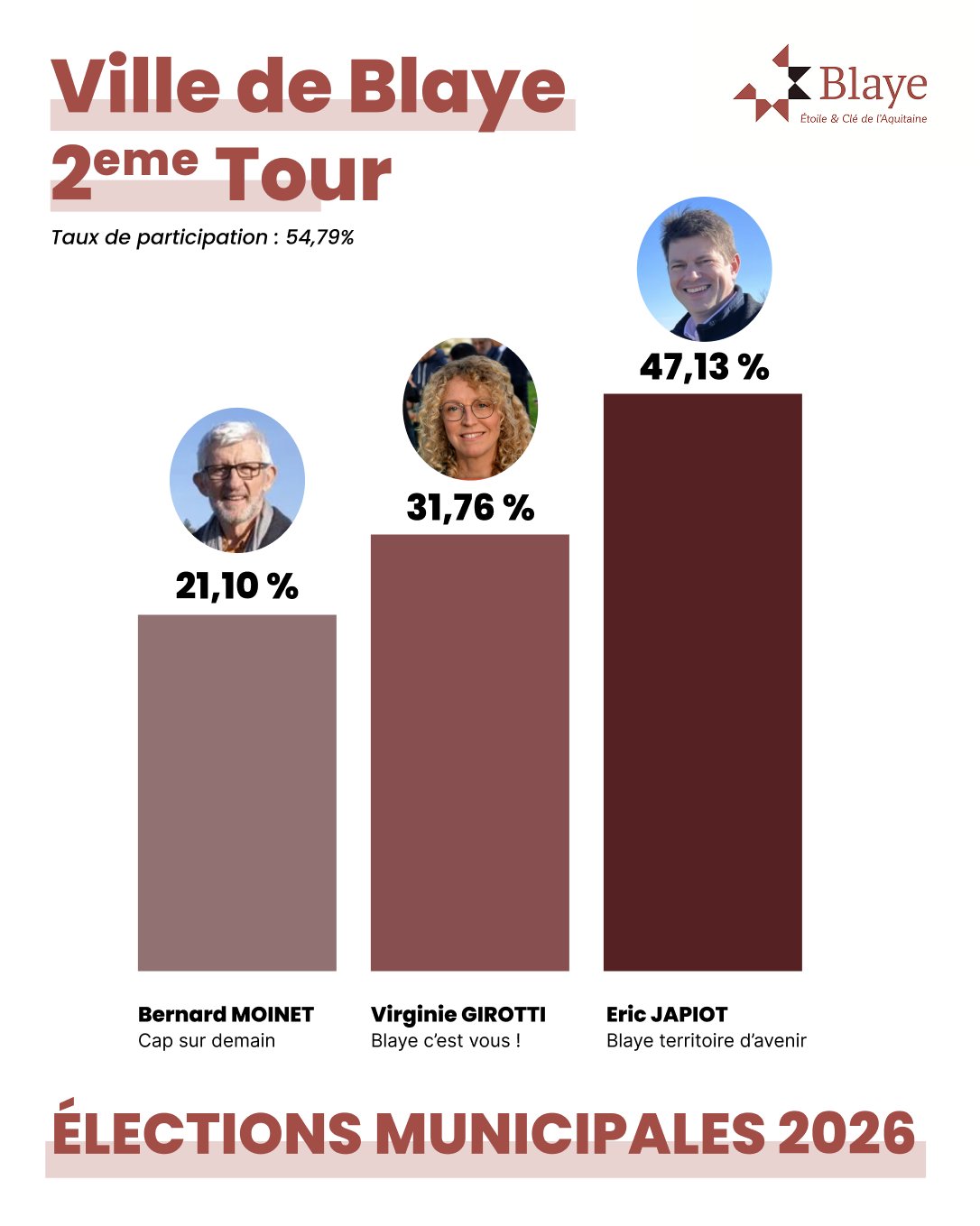 • Blaye territoire d'avenir - Éric JAPIOT : 47,13 %