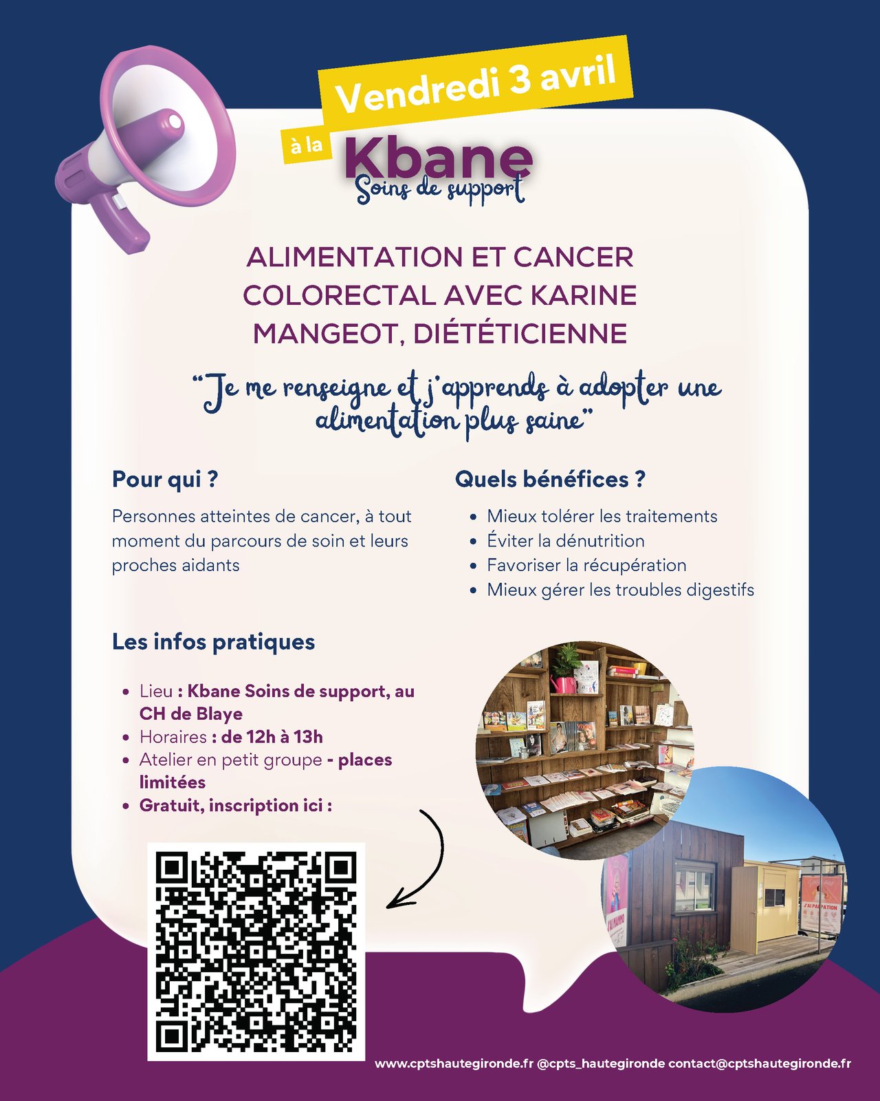 📍 La Kbane Soins de Support Hôpital de Blaye – à l’entrée des urgences (parking)