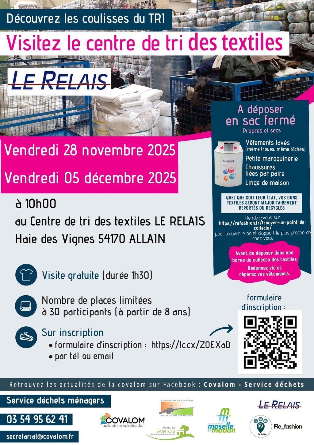 RDV au centre de tri Le Relais, Haie des Vignes, Allain, 15min avant le début de la visite.