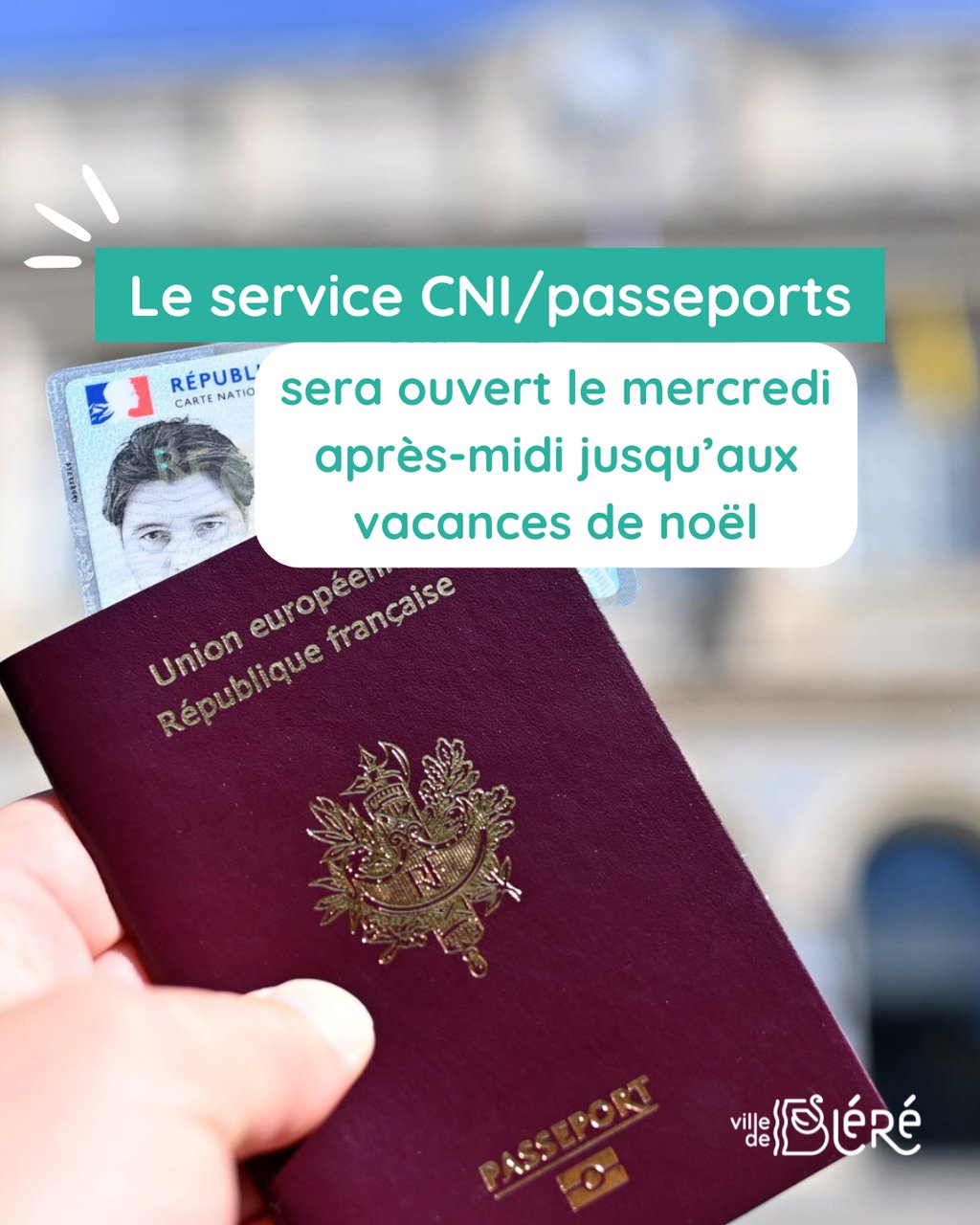 3ïžâŁ Prenez rendez-vous en mairie sur le site de la ville đ đ www.ville-blere.fr