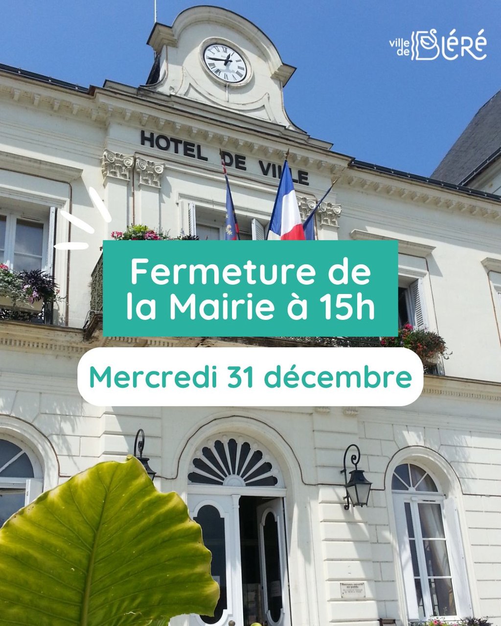 FERMETURE DE LA MAIRIE À 15H LE MERCREDI 31 DÉCEMBRE