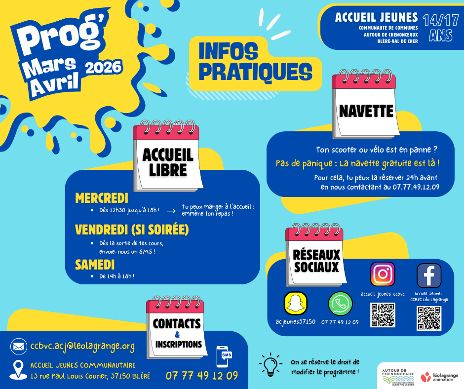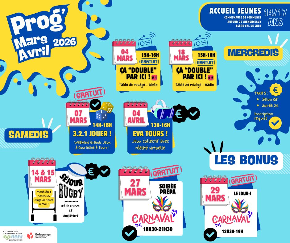 PROGRAMME MARS / AVRIL 2026 – ACCUEIL JEUNES 14/17 ANS
