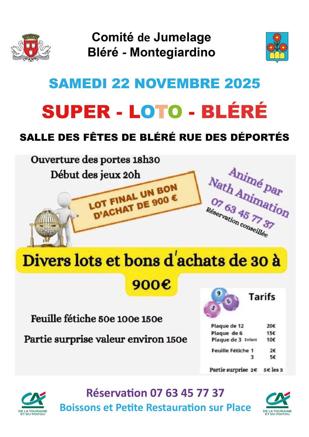 Loto organisé par le Comité de Jumelage Bléré/Montegiardino