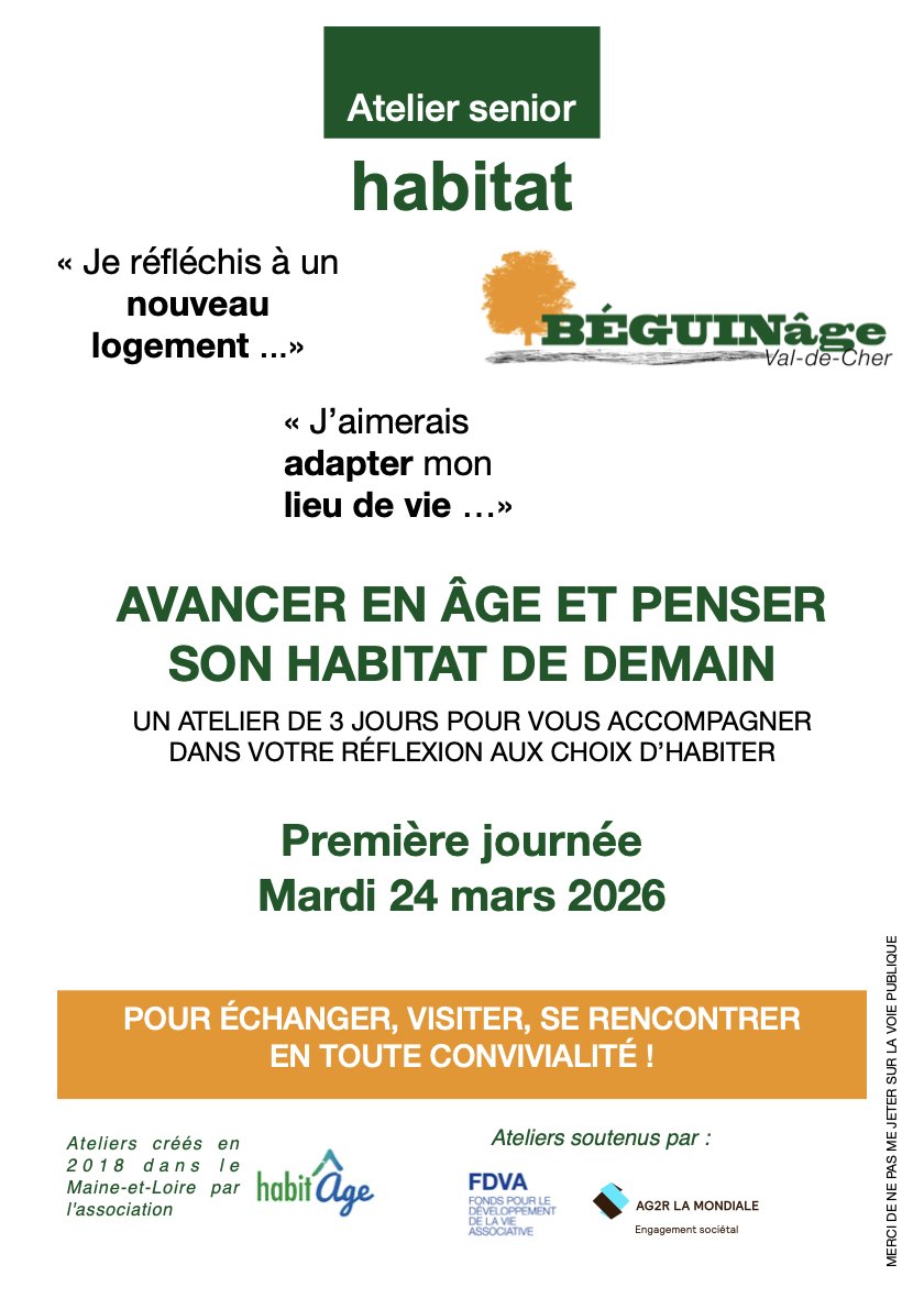 L’association Béguin’âge Val-de-Cher vous propose un atelier de 3 jours pour réfléchir sereinement à votre habitat de demain.