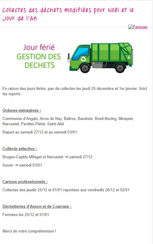 Gestion des déchets pour Noël 2025 et le premier de l'an.