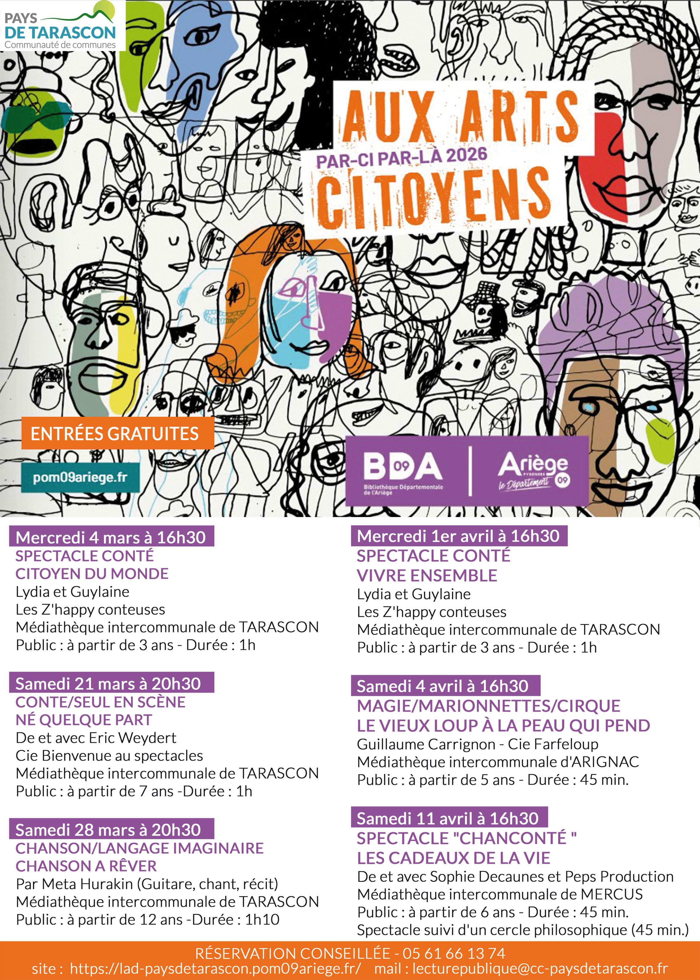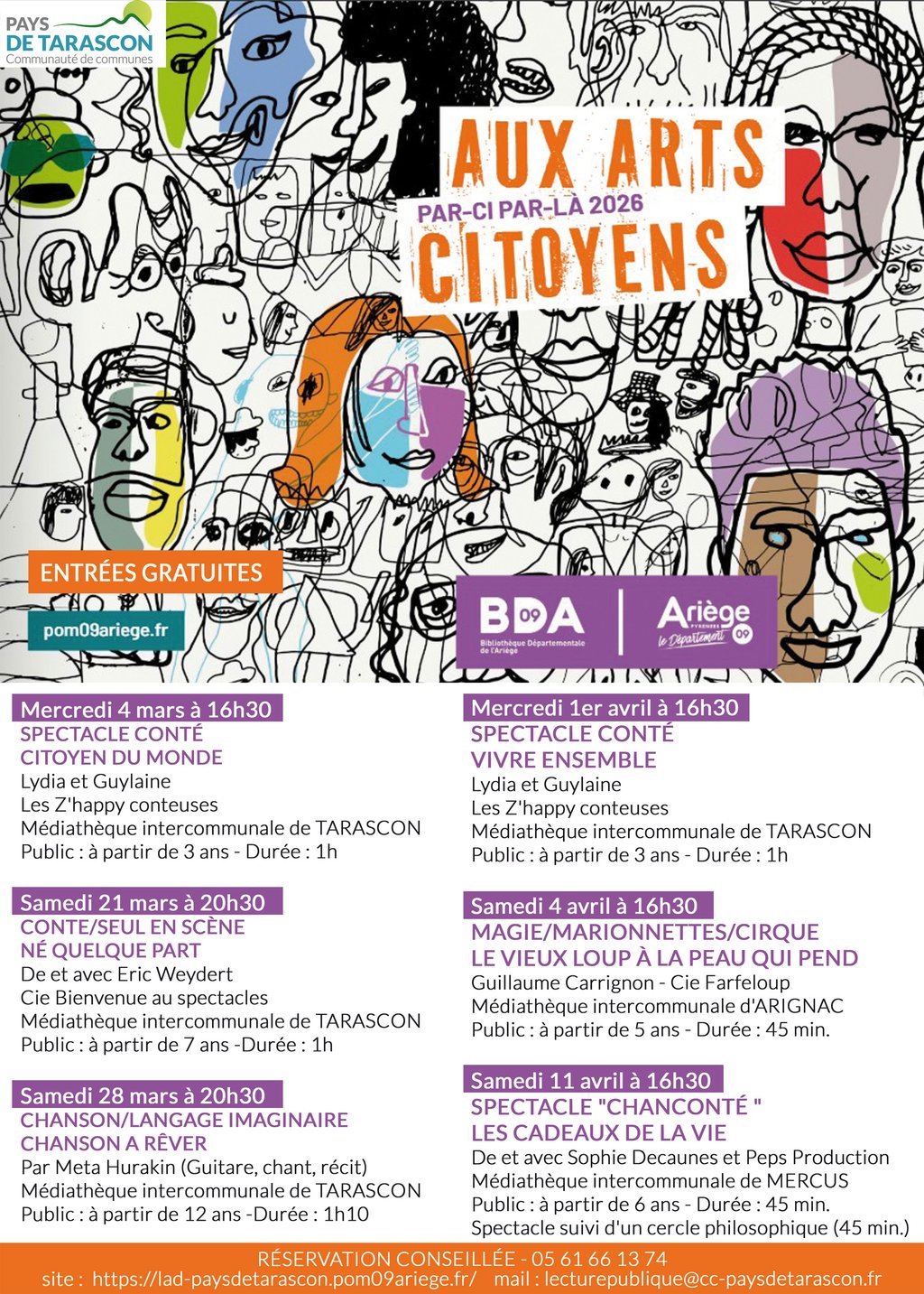 Réservations conseillées au 05 61 66 13 74 / lecturepublique@cc-paysdetarascon.fr