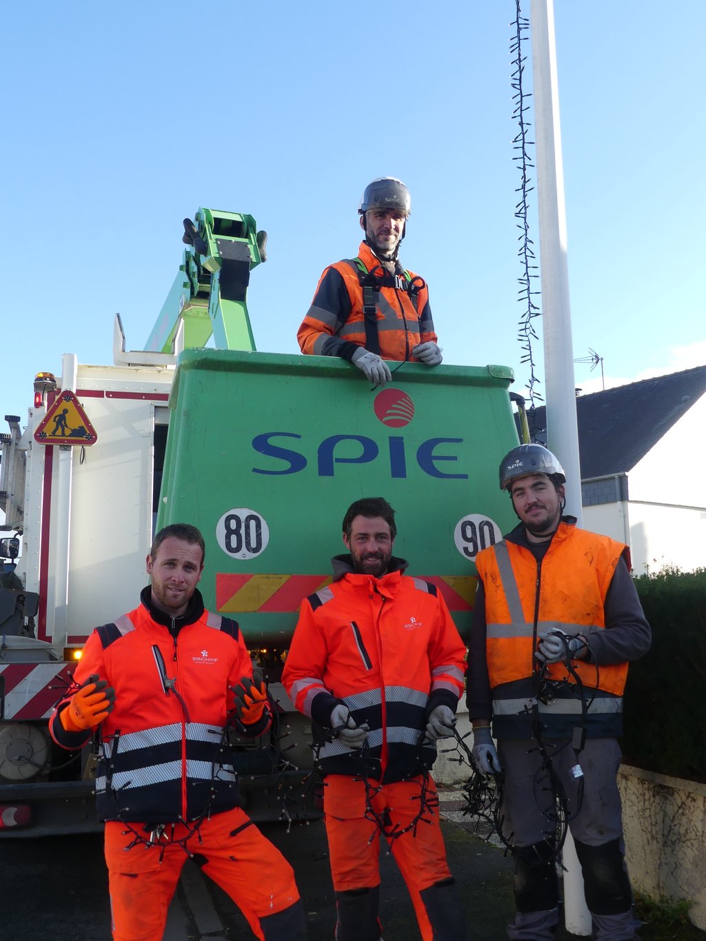 👉Aujourd'hui, Alexis Ortiz et Christophe Barbot, électriciens pour la SPIE à Laval accompagnés d'Axel et Dimitri des services techniques de la ville, ont installé les décorations sur le giratoire à l'entrée de ville, sur les candélabres rue du Maine, 5 traversées rue de la Faux et les candélabres rue de Gaulle sans oublier la mise en place du grand sapin devant les Angenoises par Emmanuel, Carole, Maxime, Serge et Benjamin