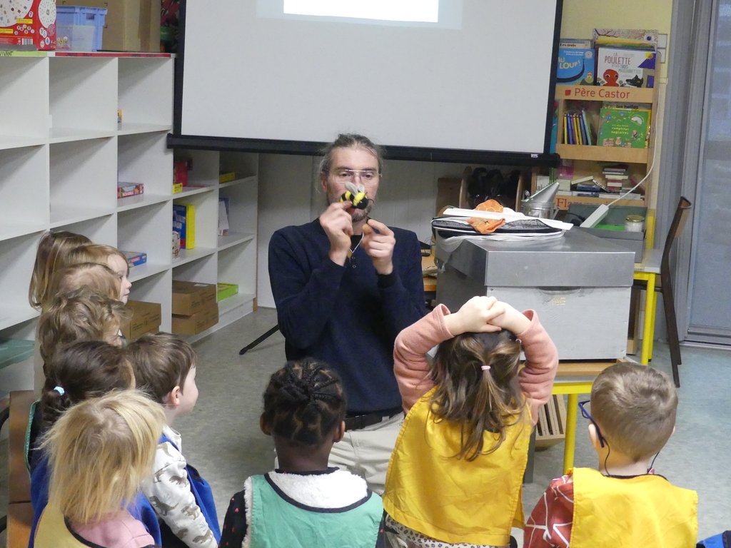"Le 1er atelier où l’on identifie cette petite bête qui peut faire peur, l’évolution entre la larve et l’abeille dans un 2nd atelier, un 3ᵉ groupe où l’on recherche la reine et le 4ᵉ atelier où l’on observe l’anatomie de l’abeille" souligne l’apiculteur qui reviendra début juin à l’école avec une vraie ruche vitrée, des abeilles et de faux bourdons (qui ne piquent pas) que les élèves pourront manipuler.