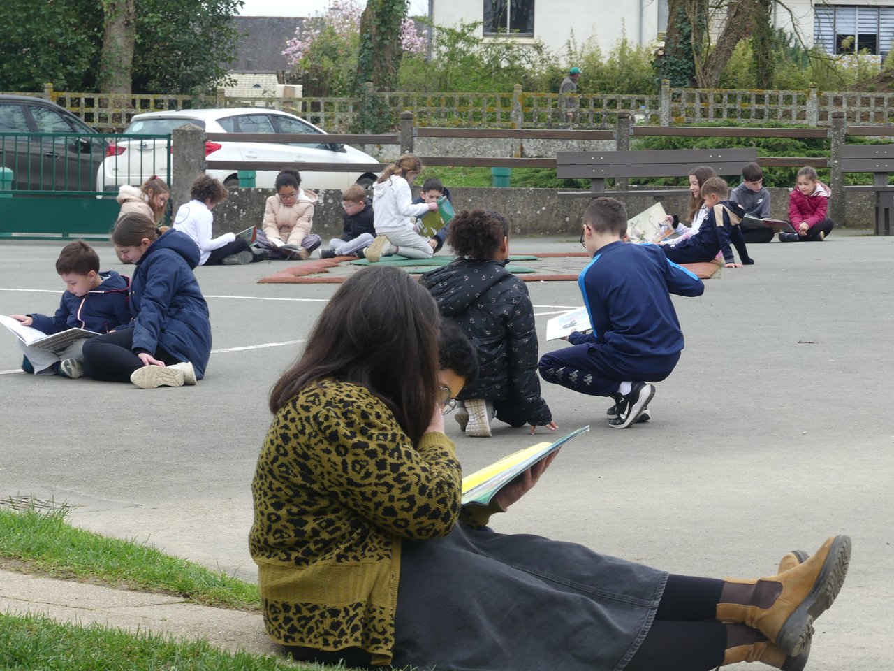 👉Dans la cour, en classe ou dans un hall, les élèves de CM ont lu des histoires aux plus jeunes, tandis que d’autres se plongeaient dans une lecture silencieuse. Les enfants peuvent choisir un livre de la classe, de la bibliothèque de l’école ou le ramener de la maison.