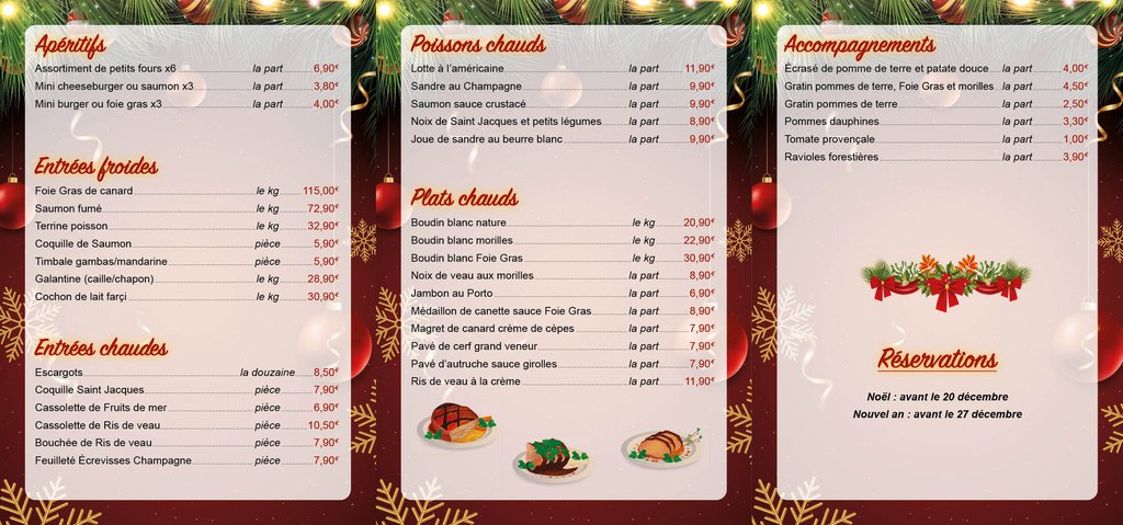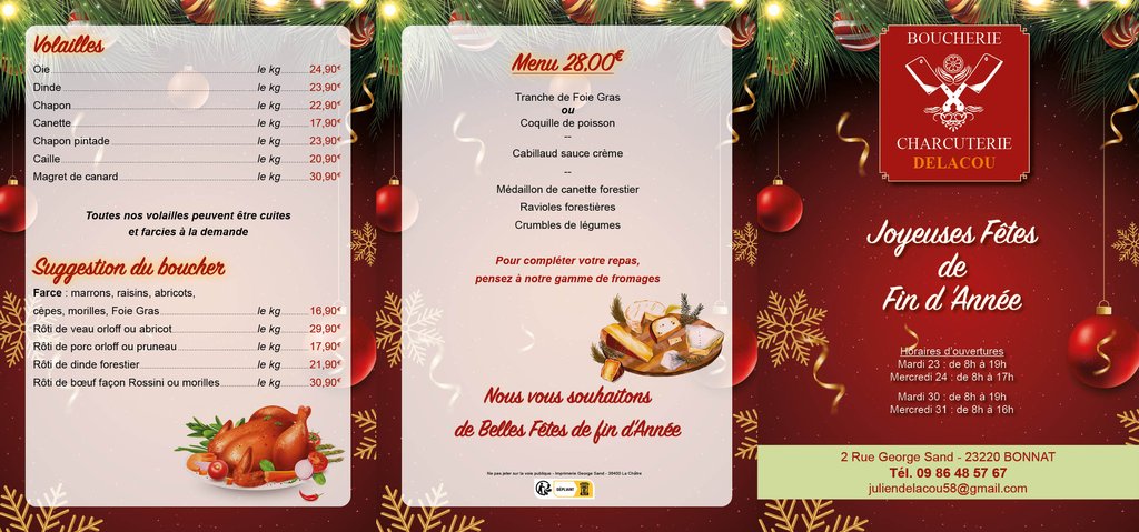 MENUS DES FÊTES DE FINS D'ANNÉE À EMPORTER DE LA BOUCHERIE DELACOU