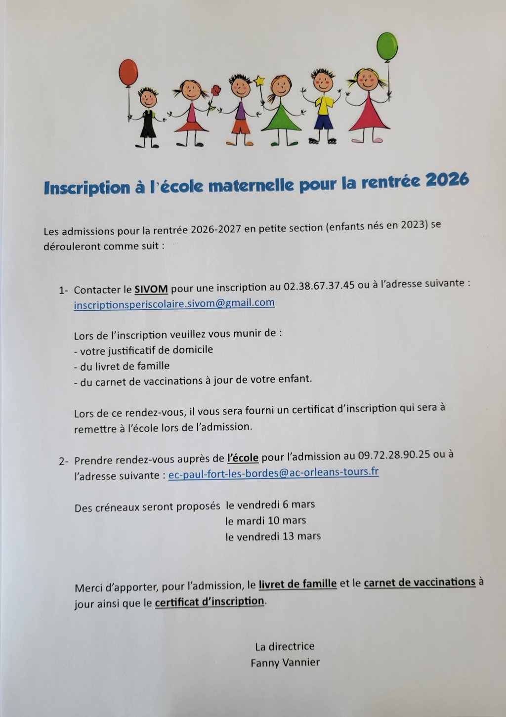 INSCRIPTION EN MATERNELLE POUR LA RENTRÉE 2026
