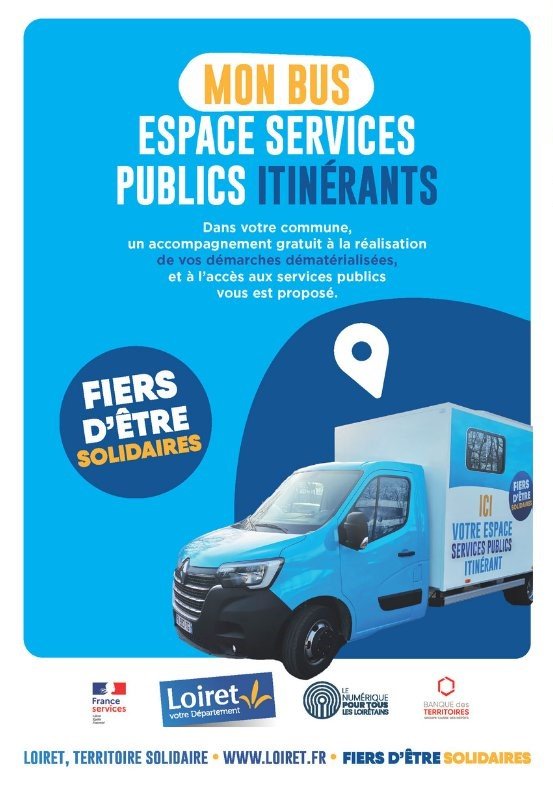 Permanence du bus "Mon Espace Services Publics Itinérants", tous les mercredis après-midi à côté de la Halle de Jargeau.