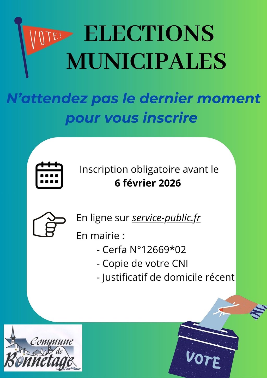 #ÉlectionsMunicipales #Votez #Civisme #CommuneDeBonnetage