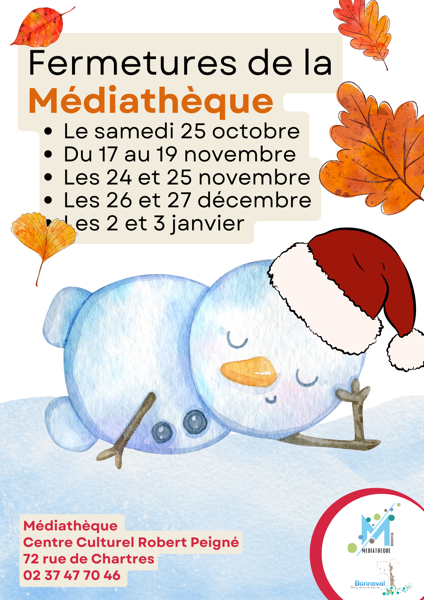 FERMETURES MÉDIATHÈQUE DE BONNEVAL