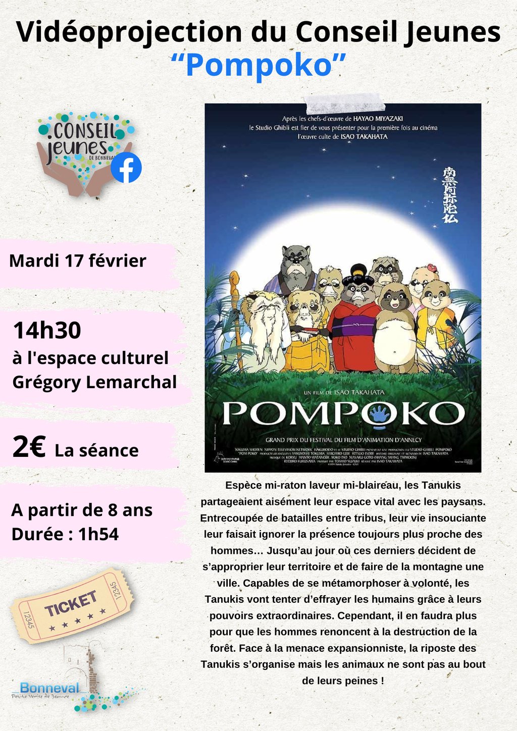 Le Conseil Jeunes vous donne RDV le mardi 17 février pour "Pompoko"