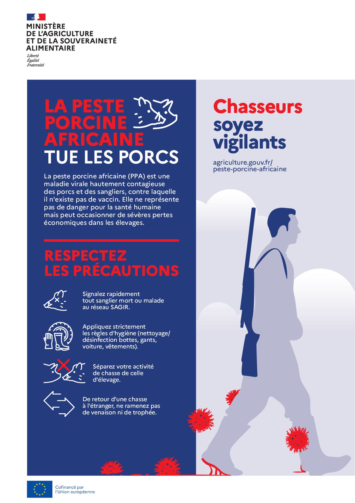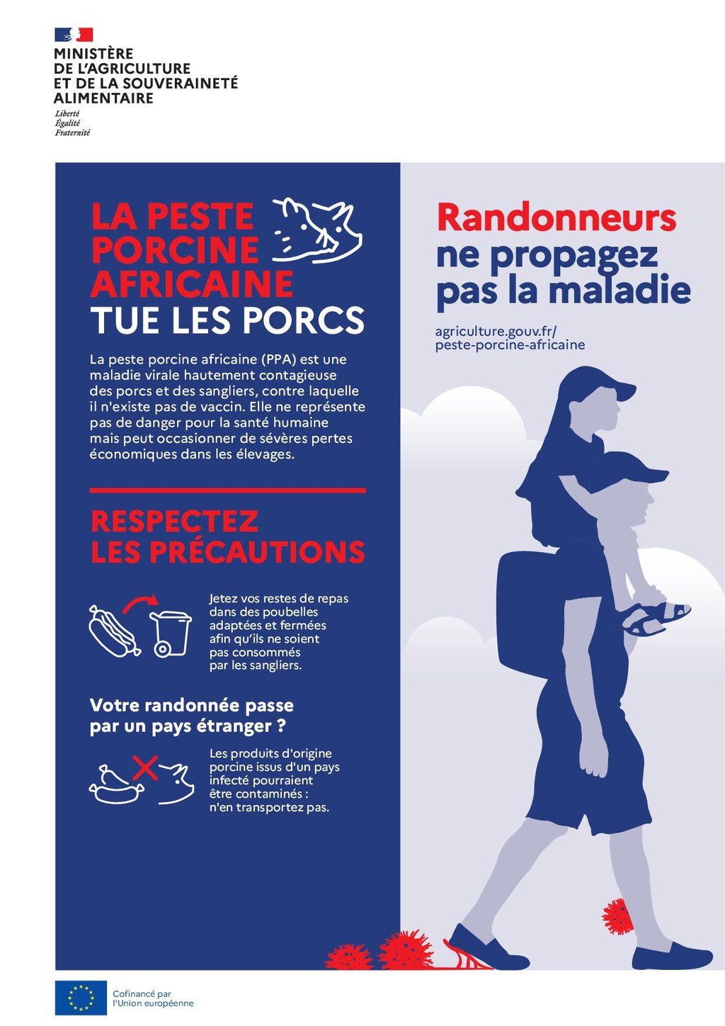 Pour les porcins, il n’existe à ce jour ni vaccin ni traitement. La maladie peut se propager aux porcs par contact direct entre un sanglier infecté et un porc, ou de manière indirecte par la consommation de restes alimentaires à base de viande contaminée ou un contact avec du matériel souillé.
