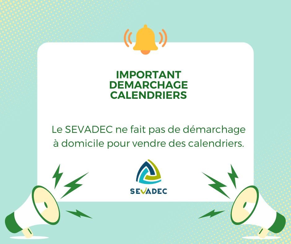 Le SEVADEC a été alerté que des personnes se présentant en son nom effectuent un démarchage pour une vente de calendriers.