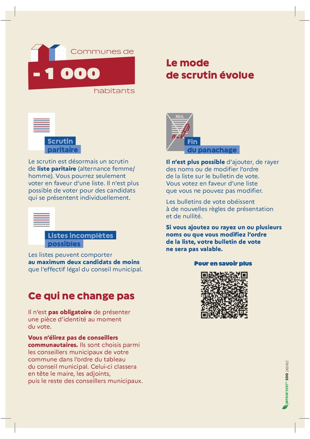 ÉLECTIONS MUNICIPALES DES 15 ET 22 MARS 2026- FIN DU PANACHAGE DANS LES COMMUNES DE -1000 HABITANTS