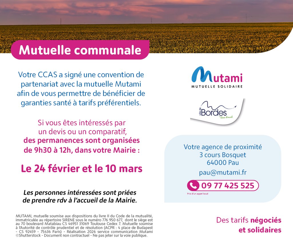 Votre commune a signé une convention de partenariat avec la mutuelle Mutami afin de vous permettre de bénéficier de tarifs préférentiels.